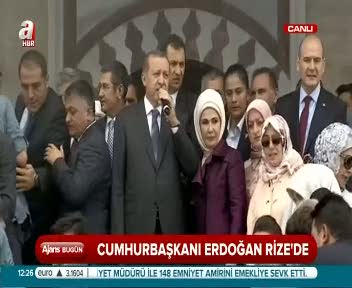Cumhurbaşkanı Recep Tayyip Erdoğan Rize'de yapımı tamamlanan Kıble Dağı Camii'nin açılışında konuşuyor.