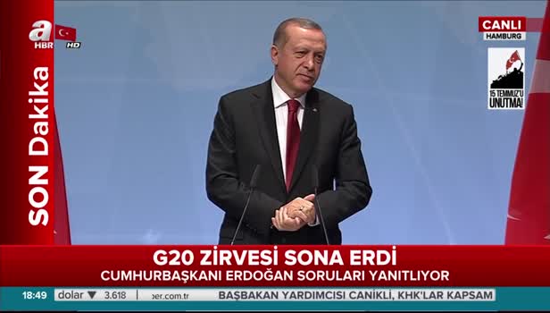 Cumhurbaşkanı Recep Tayyip Erdoğan Hamburg'ta düzenlenen G-20 sonrası açıklamalarda bulundu. Erdoğan, Büyükada'da gözaltına alınan insan hakları savunucuları için "Acaba Büyükada'daki bir otelde niçin toplanmışlardı. 15 Temmuz'un devamı niyetinde bir toplantı için bir araya gelmişlerdi" dedi.