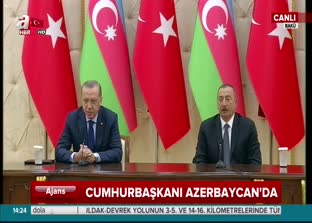 Cumhurbaşkanı Recep Tayyip Erdoğan ve Azerbaycan Cumhurbaşkanı İlham Aliyev ortak basın toplantısı düzenledi. Cumhurbaşkanı Erdoğan konuşmasında dün açılışı gerçekleştirilen Bakü Tiflis Kars demiryolu hattına ilişkin önemli açıklamalarda bulundu. Erdoğan, "Bir gün gelecek Pekin'den Londra'ya kadar bu hattı kullanmak nasip olacak" dedi.