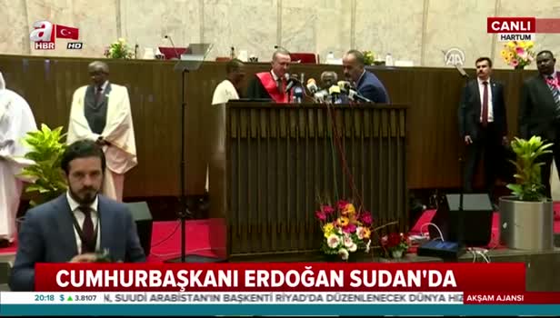 Cumhurbaşkanı Recep Tayyip Erdoğan Sudan Hartum Üniversitesi'nde kendisi için düzenlenen fahri doktora tevdi töreninde tekbirlerle karşılandı.