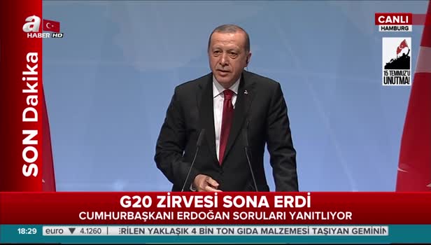 Almanya Hamburg'da düzenlenen G20 zirvesi sonrası Recep Tayyip Erdoğan açıklamalarda bulundu.