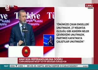 Cumhurbaşkanı Erdoğan konuşmasında, Cumhuriyet Halk Partisi Genel Başkanı Kemal Kılıçdaroğlu'nun Anayasa Değişikliği'ne ilişkin açıklamalarını dinleterek şu ifadeleri kullandı:" Ana muhalefetin başındaki zatı dinleyelim, "Düşünün yeni modeli kurduk, halk seçti Cumhurbaşkanını Başbakan da başkası oldu. Cumhurbaşkanı başka bir partinin Genel Başkanı, Başbakan da başka bir partinin Genel Başkanı. Asıl kavga o zaman çıkacak. Cumhurbaşkanı tarafsız olursa , Başbakan onun tarafsızlığına saygı göstererek onun uyarılarını dikkate alır. " Bu zat ana muhalefet partisinin Genel Başkanı, dersini çalışmamış. Hayatı hep böyle geçmiş.