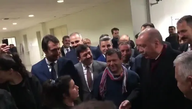 Erdoğan ile özel misafirinin arasındaki samimi diyalog salonda gülüşmelere neden oldu.