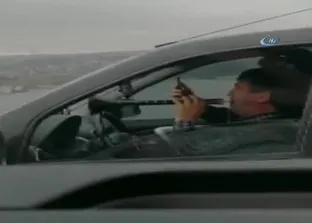 Akan trafiğe aldırış etmeyen otomobil sürücüsü, direksiyonu bırakıp zurna çalmaya başladı. Köprüde seyir halinde olan sürücünün direksiyonu bırakıp zurna çaldığını fark eden diğer sürücüler gördükleri karşısında hayrete düştü .
