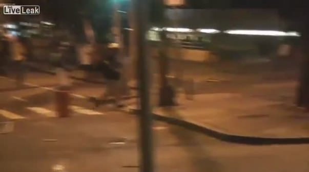 Brezilya'daki şiddet olaylarında kalabalık eylemci grubu polisleri köşe başında sıkıştırdı. Yaralanan polislerden biri kaçamadı yere yığıldı. Eylemciler yerdeki polisi tekmelemeye başladı. Polis, arkadaşlarının son anda yardıma gelmesiyle linçten kurtarıldı.