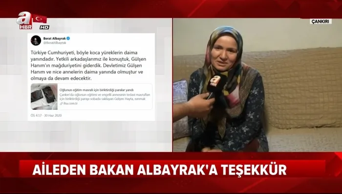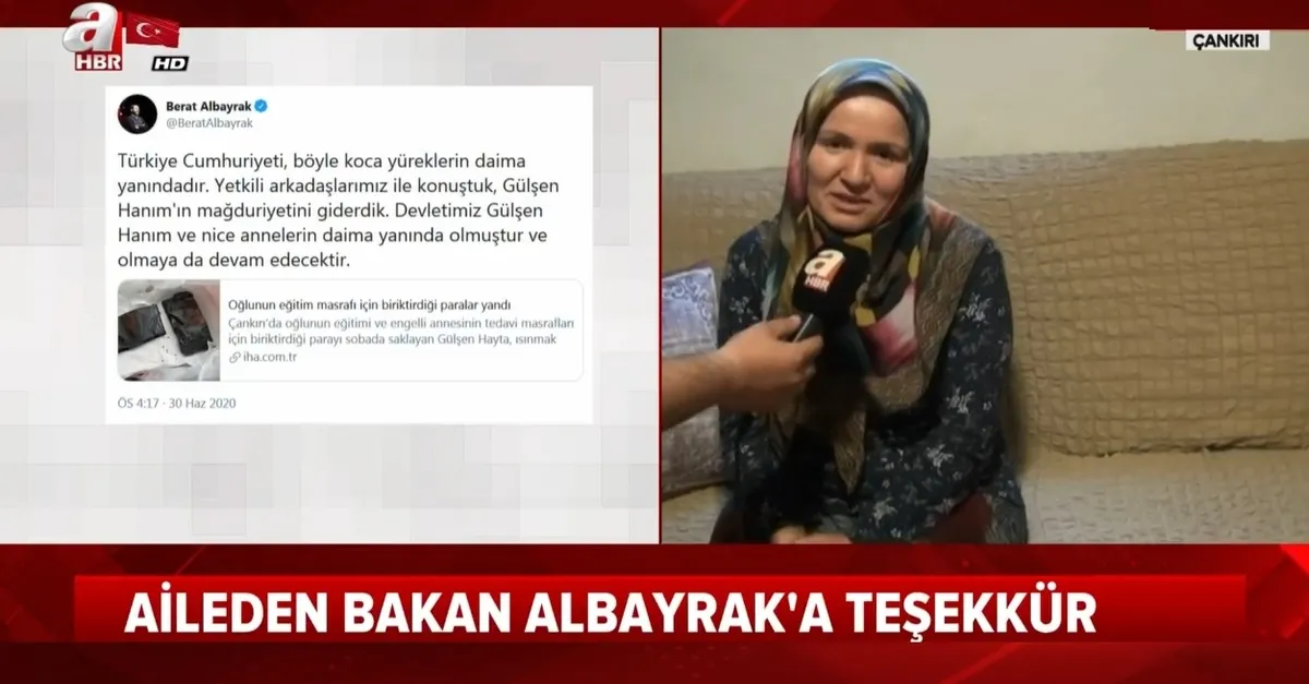 84 yaşındaki engelli annesiyle birlikte yaşayan 46 yaşındaki Gülşen Hayta annesinin tedavi masrafları için biriktirdiği paraları çalınmasın diye sobaya saklamıştı. Bir anlık dalgınlıkla sobayı yakan Hayda bütün birimini kül edip, yardım istemişti. Gülşen Hayta ve engelli annesinin çağrısına Hazine ve Maliye Bakanı Berat Albayrak kayıtsız kalmadı. Talihsiz aileyi aileyi arayan Bakan Albayrak, mağduriyetlerinin giderildiği müjdesini verdi. Gülşen Hayta ise Bakan Albayrak'ın kendilerine şahsi numarasını vererek "Sizler yalnız değilsiniz ne sıkıntınız olursa olsun Devlet yanınızda her zaman bizi arayabilirsiniz" dediğini ve bunun da kendisini daha çok mutlu ettiğini söyledi. Hayta, "Biz bir hata yaptık ama devlet bize sahip çıktı Bakanımızdan ve Başkan Erdoğan'dan Allah bir kere değil bin kere razı olsun" diyerek teşekkür etti.
