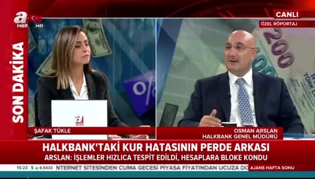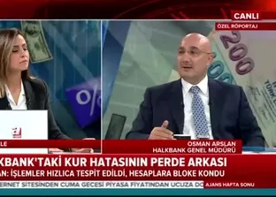 Halkbank Genel Müdürü Osman Arslan A Haber ekranlarında kur hatasının perde arkasını anlattı. Arslan, "Bloomberg servisinden güncel kuru çekerken hata oluştu" dedi.