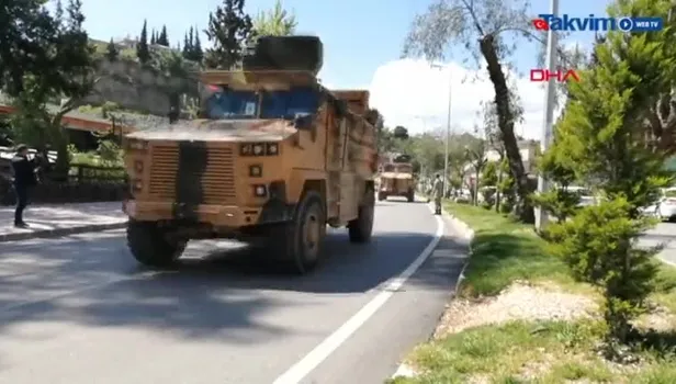 Hatay'ın Kırıkhan ilçesinde, Türk Silahlı Kuvvetleri'ne ait araçlar gerekli ikmalleri ve yüklemeleri yaptıktan sonra konvoy halinde Suriye sınırına gönderildi.