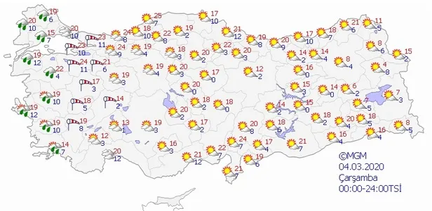 4 MART 2020 ÇARŞAMBA HAVA DURUMU
