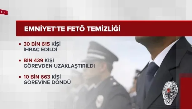 FETÖ ile mücadele kapsamında en çok ihraç emniyette gerçekleşti. 30 bin 615 kişi ihraç edildi, bin 439 kişi görevinden uzaklaştırılırken,10 bin 663 kişi ise görevine döndü.