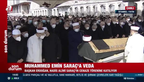 Son dakika haberleri... YÖK Başkanı Yekta Saraç'ın babası, Türkiye'nin önde gelen hadis alimlerinden Muhammed Emin Saraç, koronavirüs nedeniyle hayatını kaybetti. Hadis Alimi Muhammed Emin Saraç için düzenlenen cenaze törenine Başkan Erdoğan da katıldı. Cenaze töreninde konuşan Erdoğan, "Fırsat buldukça hep ziyarete gittim. Ziyaretlerimde kendisinden çok ama çok istifade ettim" dedi.