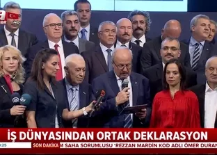 Türkiye'ye karşı başlatılan ekonomik savaşa karşılık iş dünyası bugün ortak bir deklarasyon açıkladı. Ankara'da ASO Başkanı'nın yaptığı açıklamada, "Türkiye ekonomisi kırılgan bir dönemden geçiyor. Yaşamış olduğumuz gelişmeler küresel, ekonomik, ticaret ve siyasi savaşların Türkiye ekonomisi üzerindeki olumsuz yansımalarıdır. Şunun bilinmesi gerekir ki aziz milletimizin vatan sevgisi ekonomik saldırılarla dize getirilemez getirilemeyecektir de. Birlik ve beraberliğin sağlanması Türkiye'nin kolay bir şekilde bu süreci aşmasını sağlayacaktır" ifadelerine yer verildi.
