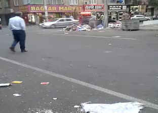 Diyarbakır'da HDP ve ona yakın sendikaların hayatı durdurma çağrısına uyan belediye temizlik görevlileri çöpleri etrafa saçtı.