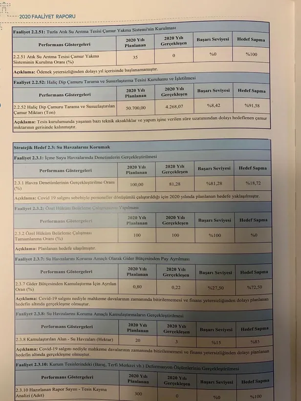 Sabah'ın haberine göre, faaliyet raporunda yer alan açıklamada ise, 'Tesis kurulumunda yaşanan bazı teknik aksaklıklar ve yapım işine verilen süre uzatımından dolayı hedeflenen çamur miktarının gerisinde kalınmıştır' ifadelerinin kullanıldığı görüldü.