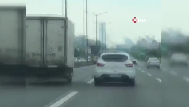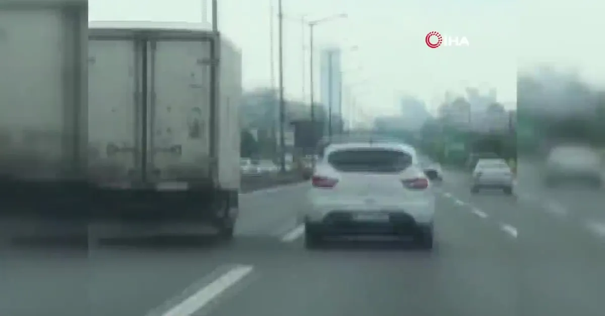 TEM Otoyolu'nda trafikte tartıştığı kamyonet sürücüsüne camdan çıkardığı baltayla saldırmaya çalışan maganda dehşet saçtı. Hem kendi canını hem de trafikteki diğer araçlardakilerin canını tehlikeye attı.