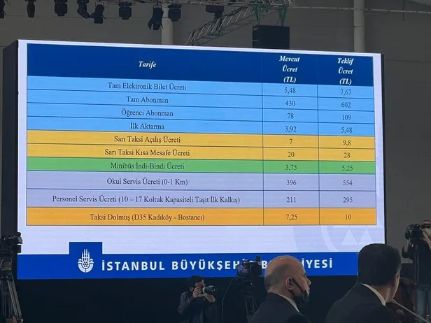 Son dakika haberine göre, İstanbul'da toplu ulaşıma yüzde 40 zam yapıldı. Zam sonrası öğrenci aylık akbil ne kadar oldu? Tam elektronik bilet fiyatı ne kadar? Aylık akbil tam abonman ücreti ne kadar? İlk aktarma ücreti ne kadar? Sarı taksi açılış ücreti ne kadar? Sarı taksi kısa mesafe ücreti ne kadar? Minübüs indi-bindi ücreti ne kadar oldu? Okul servisi ilk 1 kilometre ücreti ne kadar oldu? Personel servis ücreti ne kadar oldu? Taksi dolmuş (Kadıköy-Bostancı) ücreti ne kadar oldu? İşte yeni zamlı fiyatlar...