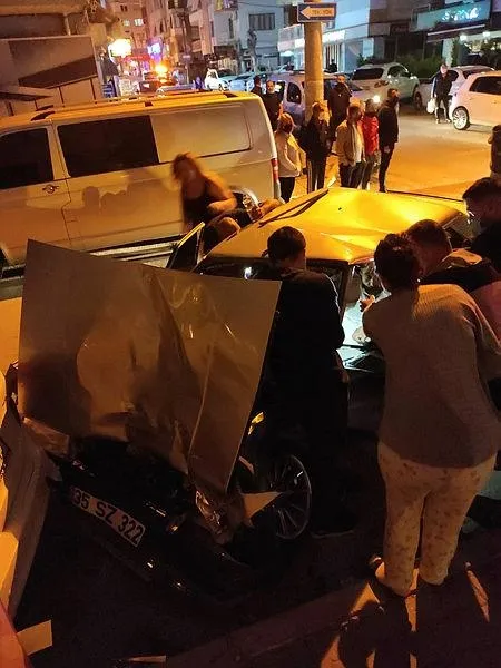 Çarpmanın etkisiyle Mehmet A.'nın bulunduğu 35 SZ 322 plakalı otomobil, park halindeki başka bir otomobile vurdu. Kazada Sabri A. ile diğer otomobilde bulunan Mehmet A. ve yolcu konumundaki oğlu A.A.A.(10) yaralandı. Çevredeki kişilerin ihbarı üzerine olay yerine sağlık, itfaiye ve polis ekipleri sevk edildi. Otomobilde sıkışan Mehmet A., itfaiye ekiplerinin çalışmasıyla araçtan çıkartılarak sağlık ekiplerine teslim edildi. İlk müdahalesi olay yerinde yapılan yaralılardan Mehmet A., Ege Üniversitesi Tıp Fakültesi Hastanesi'ne, A.A.A. ile Sabri A. ise Sağlık Bilimleri Üniversitesi Tepecik Eğitim ve Araştırma Hastanesi'ne kaldırıldı. Tedavi altına alınan yaralılardan Sabri A.'nın hayati tehlikesinin bulunduğu, baba ile oğlunun sağlık durumlarının iyi olduğu öğrenildi.