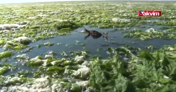İzmir Körfezi’nin üzerinde beliren yeşil renkli yosunlar büyük bir şaşkınlığa ve korkuya sebep olurken, suyun soğumamasından dolayı denizde alg patlamasının yaşandığı öğrenildi.