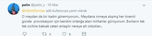 Taksim'de 8 Mart Dünya Kadınlar günü için düzenlenen yürüyüş bazı gruplar tarafından amacından saptırıldı. Yürüyüşte açılan pankartlara sosyal medyadan tepki yağıyor: Bu mu feminizm? Bu mu dünya kadınlar günü? Bu mu kadın haklarını savunmak? Bu mu 8 Mart Dünya Kadınlar Günü? Çok mu aydın, çağdaş, laik, ilerici, kültürlü, batılı oldunuz!