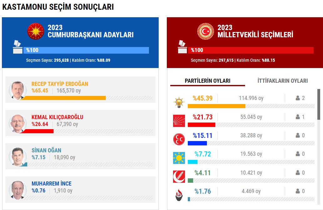 KASTAMONU SEÇİM SONUÇLARI 2023! Kastamonu Cumhurbaşkanlığı ve Milletvekili genel seçimleri oy oranları |Video