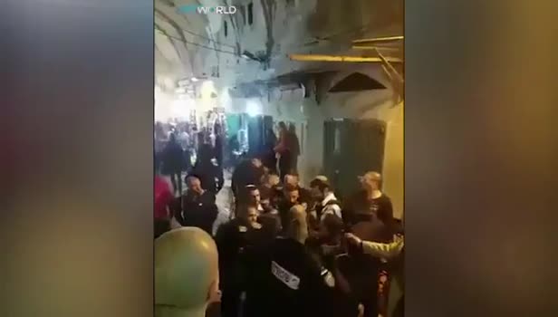 Mescid-i Aksa girişinde Türk ziyaretçilerin Türk bayraklı tişörtlerini çıkartmalarını isteyen İsrail polisinin vatandaşlarımızı gözaltına aldığı anlar...