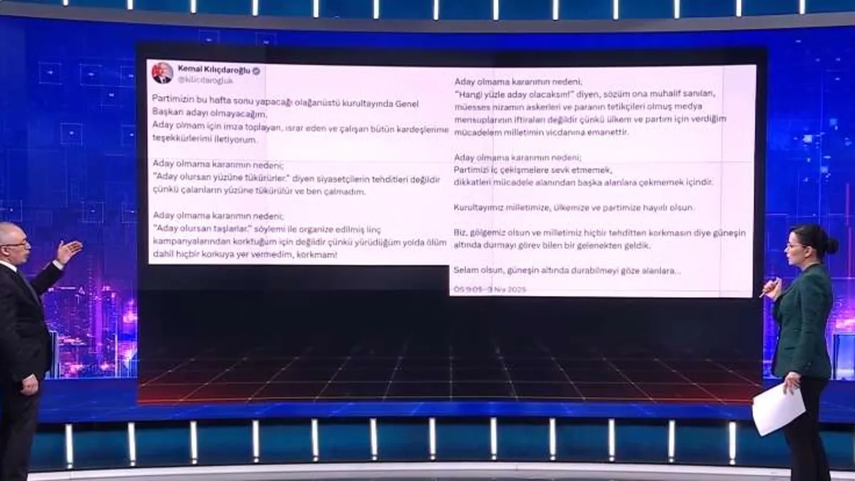 CHP eski Genel Başkanı Kemal Kılıçdaroğlu, 6 Nisan’daki kurultayda adaylık kararını duyurdu. Sosyal medya hesabından yaptığı açıklamada, İBB Başkanı Ekrem İmamoğlu’na yönelik yolsuzluk soruşturmasına göndermede bulunarak, "Çalanların yüzüne tükürülür ve ben çalmadım" dedi.