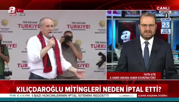 CHP Genel Başkanı Kılıçdaroğlu'nun, CHP'nin cumhurbaşkanı adayı Muharrem İnce ile 10 ortak miting yapacağı duyurulmuştu. Ancak Kılıçdaroğlu bu mitingleri iptal etti. Peki Ankara kulislerinde bu olay ile ilgili neler konuşuluyor. A Haber Ankara Haber Koordinatörü Fatih Atik, kulisleri canlı yayında değerlendirdi. Atik, kulislerde 24 Haziran'ın Kılıçdaroğlu'nun son seçimi olacağı , 'yoruldum' diyerek, hatta sağlık problemini gerekçe göstererek çekilmeyi düşündüğünün konuşulduğunu aktardı.