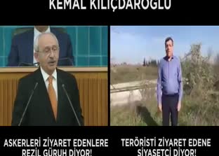 CHP Genel Başkanı Kılıçdaroğlu, Suriye sınırında askerlere moral ziyareti yapan sanatçılara etmediği hakareti bırakmayıp, 'bir güruh' ve 'rezil adamlar' ifadelerini kullanmıştı. Mehmetçiğe moral veren sanatçılara demediğini bırakmayan Kılıçdaroğlu, teröristleri ziyaret eden kendi vekillerine karşı ise sus pus. CHP Genel Başkan Yardımcısı Öztürk Yılmaz, 'Başkan Apo'nun heykelini dikeceğiz' diyen cezaevindeki Selahattin Demirtaş'ı ziyaret etmişti.