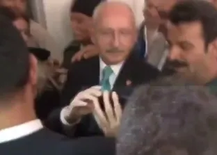 CHP lideri Kemal Kılıçdaroğlu, Türkiye Kuvayi Milliye Mücahitler Derneği'ni ziyaretinde bir vatandaş ile selfie çekmek isterken zor anlar yaşadı.