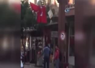 Nazilli'nin Uzun Çarşı girişinde asılı bayrak rüzgardan ters dönüp katlanınca, bayrağın bu hali lise öğrencisi oldukları tahmin edilen üç gencin dikkatinden kaçmadı.