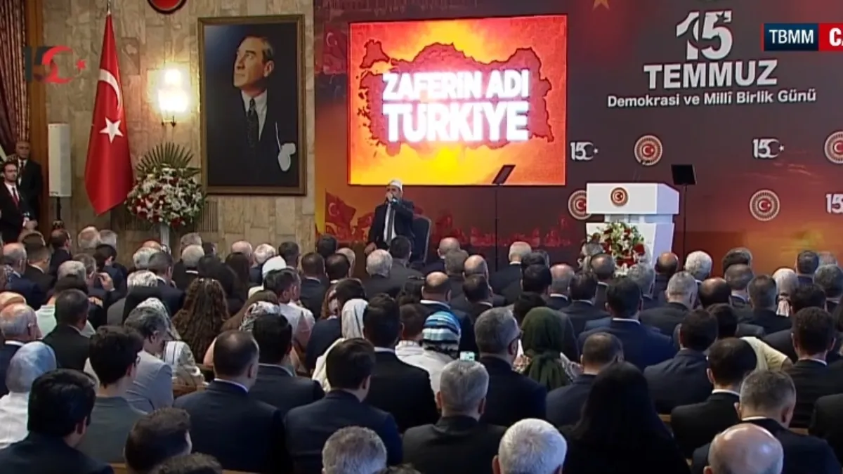 15 Temmuz Milli Birlik ve Dayanışma Günü dolayısıyla Türkiye Büyük Millet Meclisi’nde şehitler anıldı. Programda Kur’an-ı Kerim okundu, ardından Diyanet İşleri Başkanı Prof. Dr. Ali Erbaş şehitler için dua etti.