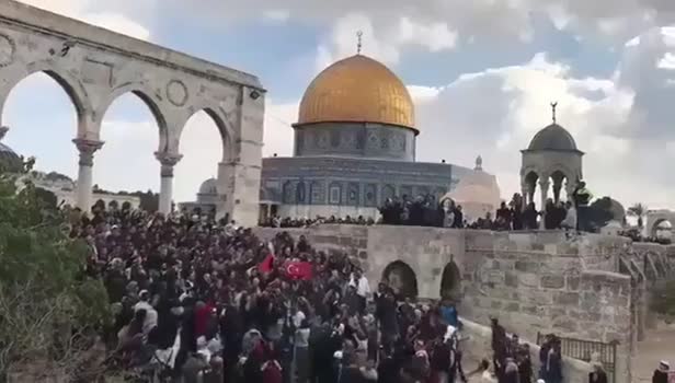 İsrail polisi Kudüs’te cuma namazı sonrası protesto gösterisi düzenleyen cemaate biber gazlı sprey sıkarak fiziksel müdahalede bulundu. Filistinliler Türk bayrakları açarak tekbir ve sloganlar eşliğinde surlarla çevrili kadim şehrin Şam Kapısı’na doğru yürüye geçti.