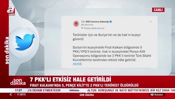 MSB açıkladı: 7 terörist daha etkisiz hale getirildi! "Teröristler için ne Suriye’nin ne de Irak’ın kuzeyi güvenli"