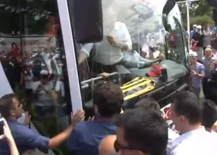 Otobüs bir türlü yerinden hareket etmeyince sinirlendiği gözlenen İnce, otobüs önünde biriken kalabalığa, "Bakın mitingimiz var otobüs battı buraya çıkmamız lazım, kenara çekilirseniz çıkarız" diye seslendi. Muharrem ince kalabalığın bir türlü dağılmaması üzerine ise "Gençler işe yaramak istiyorsanız gidin arkadan öne doğru itin" uyarısında bulundu.