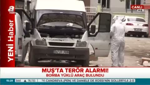 Muş'ta güvenlik güçlerinin yaptığı operasyonda bomba yüklü araç bulundu. Bomba yüklü aracın valilik binasına 200 metre mesafede olduğu öğrenildi.
