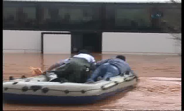 Gaziantep'te selden dolayı otobüste mahsur kalan yaklaşık 35 öğrenciyi kurtarmak için olay mahaline bot getirildi. Kurtarma ekipleri, mahsur kalan öğrencilere ulaşmaya çalışıyor.