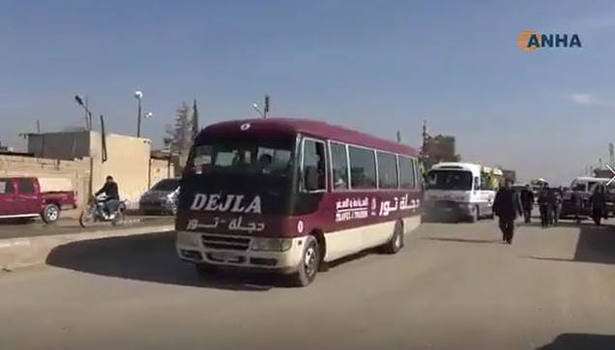 Terör örgütü PKK, Kamışlı'daki sivilleri Afrin'de canlı kalkan yapmak amacı ile bir konvoy ile yola çıkardı. Konvoyun amacı Afrin'e ulaşmak. Konvoyda terörist başı Öcalan'ın flamaları ve PKK paçavraları yer alıyor.