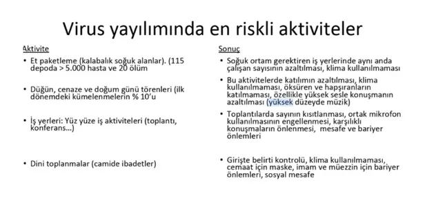Prof. Dr. Mehmet Ceyhan; düğün, cenaze, konferans, toplantı ve toplu ibadetler gibi durumların coronavirüsün yayılması noktasında halen ciddi riskler taşıdığını belirtti.