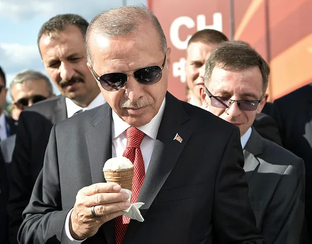 Erdoğan ve Putin, fuarı gezerken dondurmacının önünde durdu. İki lider dondurma yedi.