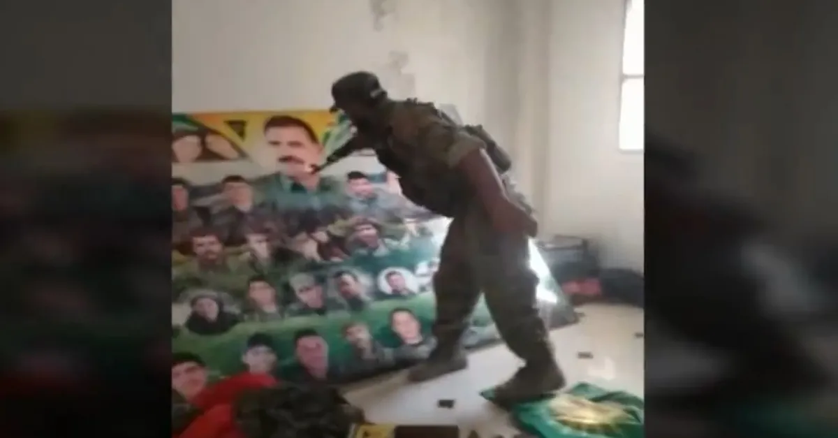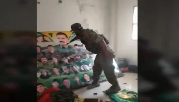 Barış Pınarı Harekatı 4. gününde başarıyla devam ediyor. Suriye Milli Ordusu, bu sabah Rakka'nın kuzeydoğusunda yapılan operasyonda 18 köyün kurtarıldığını ve onlarca PKK'lı teröristin öldürüldüğünü açıkladı. Resulayn merkezini ele geçiren Suriye Milli Ordusu, arama tarama kapsamında PKK/YPG'li teröristler tarafından üs olarak kullandıkları yerlere de girdi. Suriye Milli Ordusu'na bağlı Hamza Tugayı askeri, YPG paçavralarını ayaklarının altında ezerken terör örgütü ele başı Abdullah Öcalan'ın posterini silahıyla delik deşik etti.