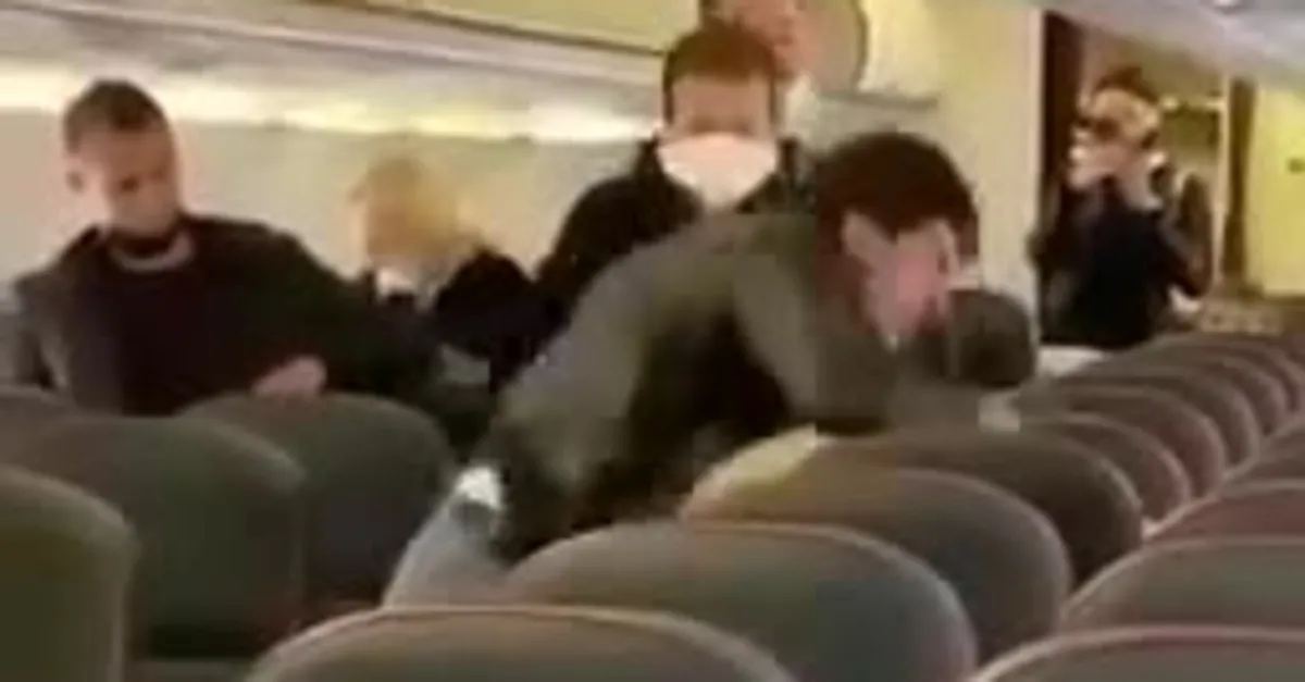 Rusya’da yolcu uçağında ‘sosyal mesafe’ kavgası böyle görüntülendi!