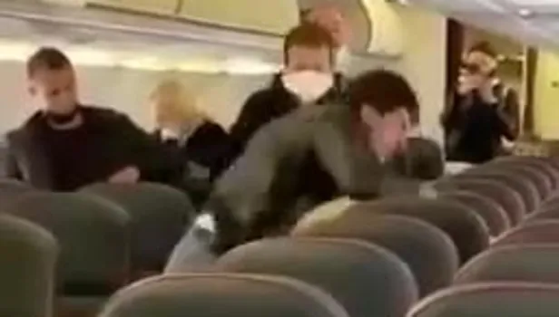 Rusya’da Soçi-Moskova seferini yapan bir uçakta ‘sosyal mesafe’ kavgası çıktı. Yolculardan birinin uçak iniş yaptığı sırada inmek için acele etmesi ve diğer yolculara çarpması sonucu 2 kişi birbirine girdi. O anlar saniye saniye yolcuların kamerasına yansıdı.