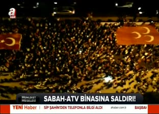 Beşiktaş'ta terörü lanetlemek için toplanan Ülkücü grubun içerisinde bulunan provokatörler Balmumcu'da bulunan Sabah-Atv binasına taşlı, pet şişeli ve bıçaklı saldırıda bulundu...