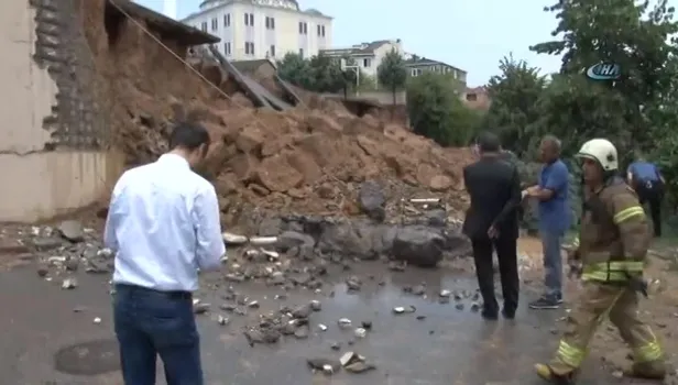 İstanbul Sancaktepe'de okulun istinat duvarı çöktü. .