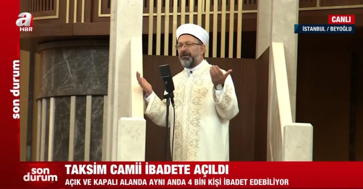 SON DAKİKA: Camiye karşı olanlar Diyanet İşleri Başkanı Prof. Dr. Ali Erbaş'ın Taksim Camisi'nde kılıçsız çıkmasına şaşırdı