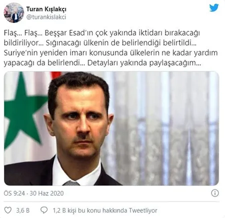Arap dünyasının yakın takip ettiği ve Orta Doğu araştırmaları ile tanınan gazeteci Turan Kışlakçı, Twitter hesabından yaptığı paylaşımda, Beşşar Esed'in iktidarı bırakmasının ardından ülkelerin Suriye'ye yapacağı maddi yardımların miktarını da belirlediğini söyledi.
