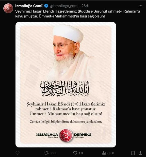 Son Dakika İsmailağa Cemaati lideri Hasan Kılıç vefat etti!