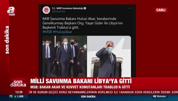 SON DAKİKA: MSB duyurdu: Bakan Akar ve Genelkurmay Başkanı Güler Trablus'a gitti