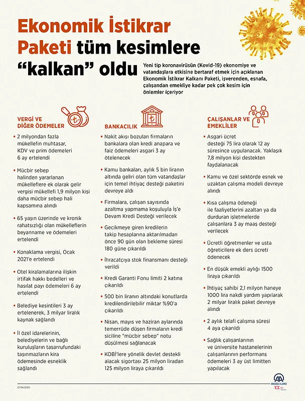 Ayrıca ekonomide alınan tebdirlerle de hem işçi hem esnaf korunuyor. Esnafa ödemeler açısından birçok önlem paketi açıklanırken, süreç boyunca işçilerin de mağdur olmaması için gerekli tedbirler alınıyor, istihdamı korumak amaçlı işçilere maaş desteği sağlanıyor.