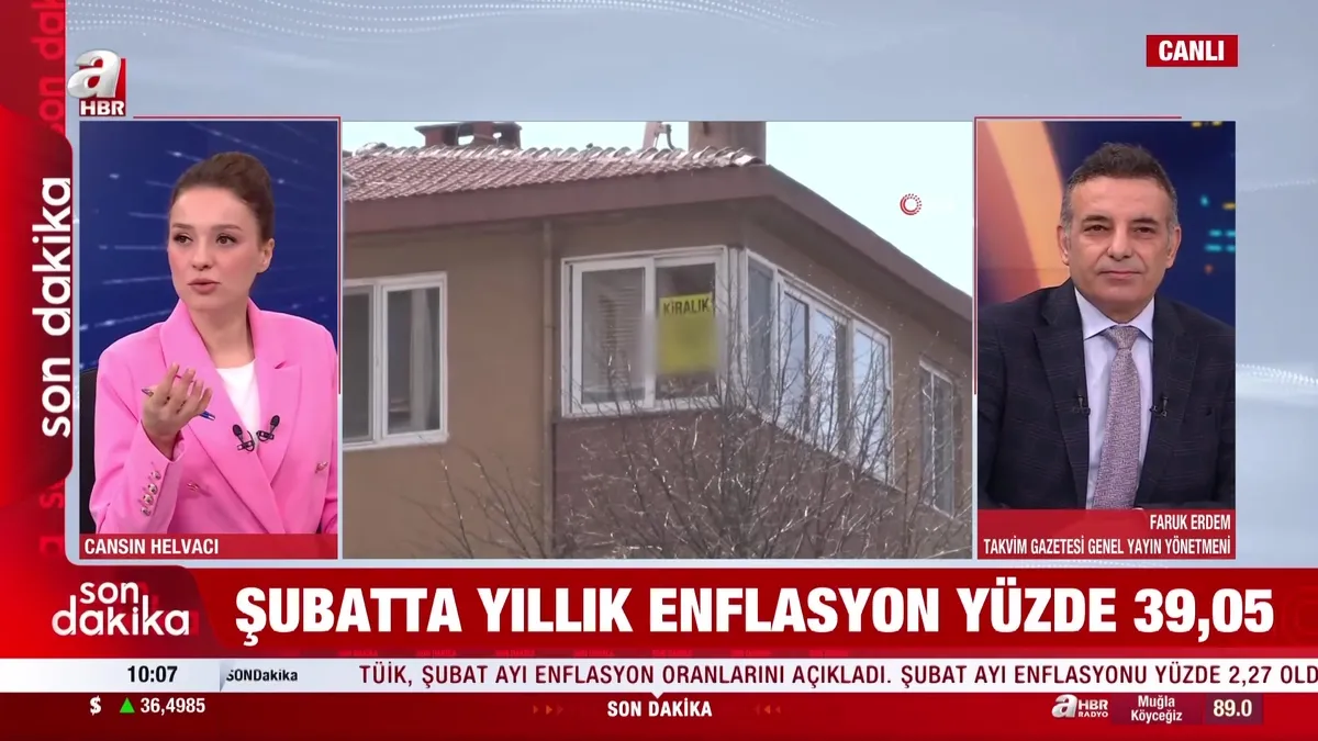 TÜİK verilerine göre, şubat ayında enflasyon aylık yüzde 2,27 artarken, yıllık enflasyon yüzde 39,05'e geriledi. Böylece yıllık enflasyon, yüzde 40'ın altına inerek son 20 ayın en düşük seviyesini gördü. Takvim Gazetesi Genel Yayın Yönetmeni Faruk Erdem, A Haber’de verileri değerlendirdi.